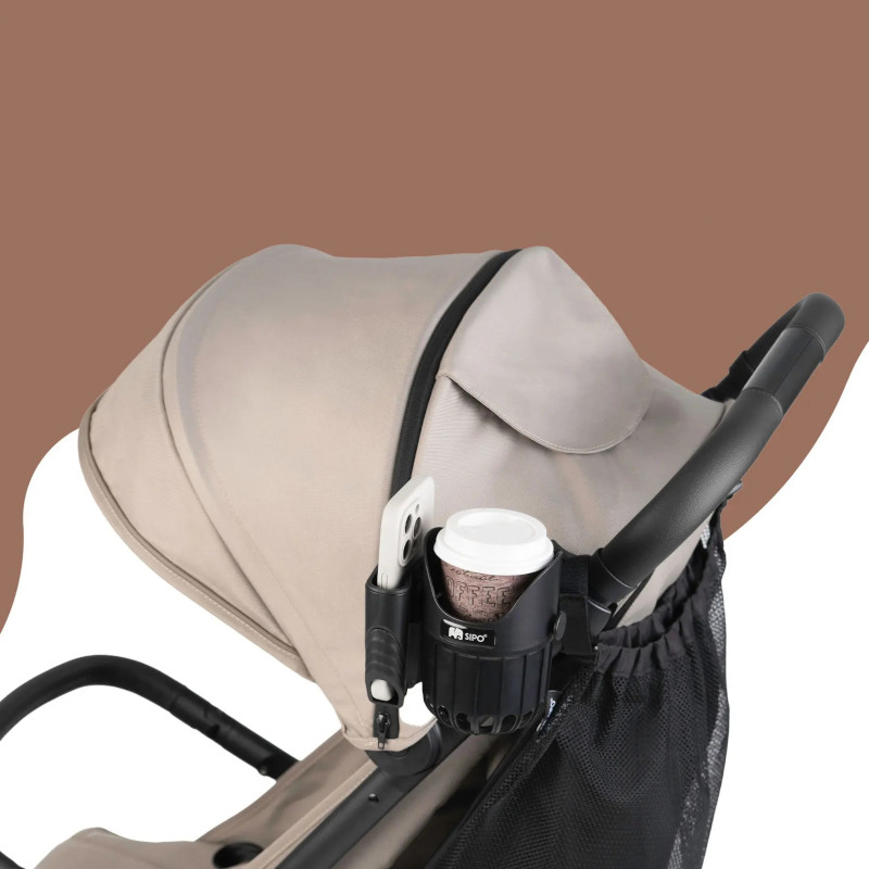 Uchwyt na kubek i telefon SIPO to praktyczne akcesorium 2w1, które zapewnia wygodę i funkcjonalność podczas każdego spaceru z dzieckiem.