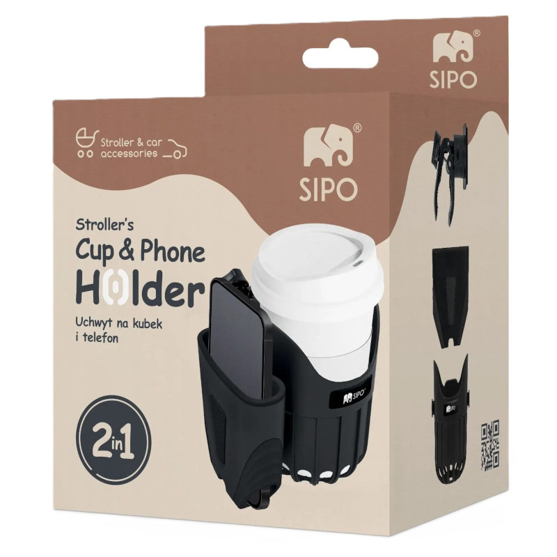 Uniwersalny uchwyt na kubek i telefon 2w1 do wózka dziecięcego, Sipo