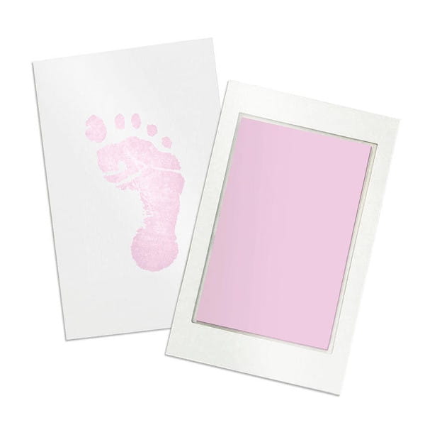 Niebrudzący tusz do odcisków dla niemowląt w kolorze różowym pozwala na bardzo dokładny odcisk nóżki czy rączki dziecka. Odcisk możesz wykonać w albumie dziecka lub na dołączonych kartach i oprawić go w ramki.