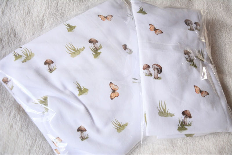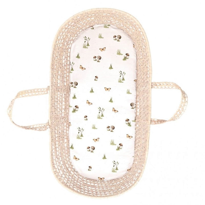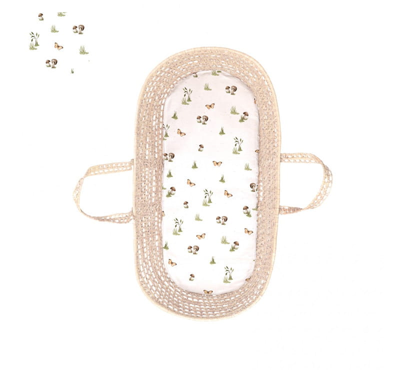 Prześcieradło do gondoli z pięknym wzorem grzybków i motylków kolekcji Happy Bear marki BabySteps
