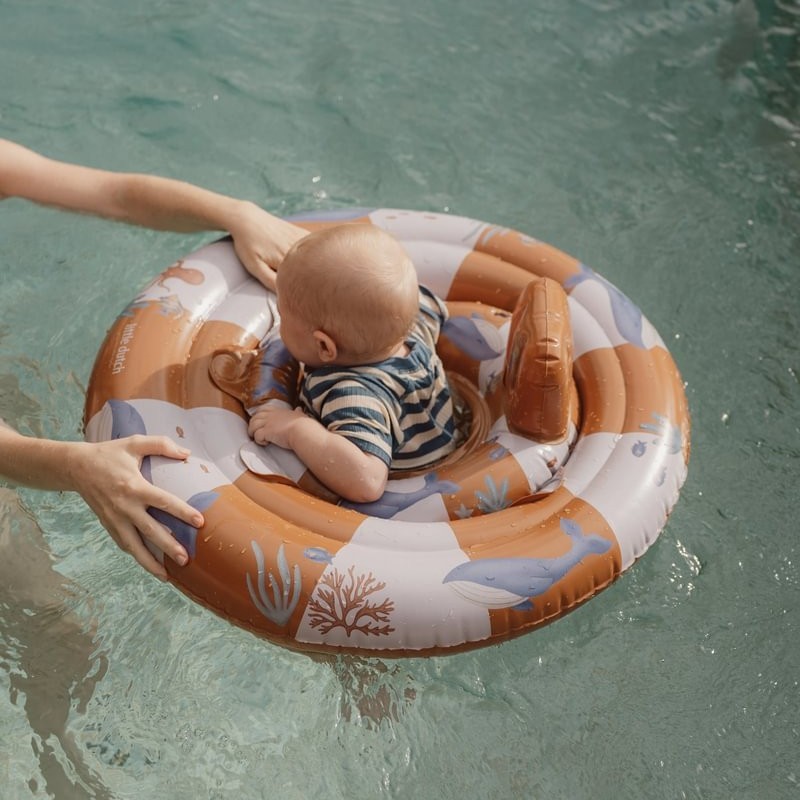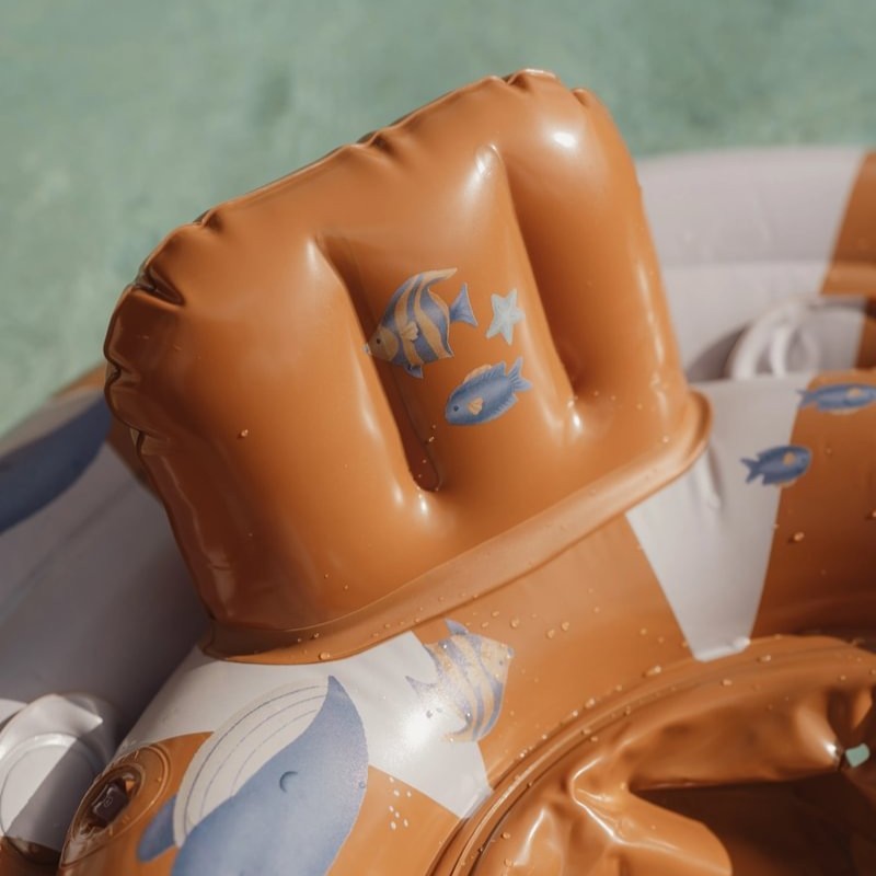 Pływający fotelik w formie okrągłego siedziska idealnie sprawdzi się do oswajania małego dziecka z wodą oraz początków nauki pływania. Koło posiada siedzisko z miejscem na nóżki zabezpieczające malucha przed zsunięciem się do wody, natomiast dmuchane oparcie zapewni bezpieczeństwo i komfort podczas przyjemnego unoszenia się na wodzie.