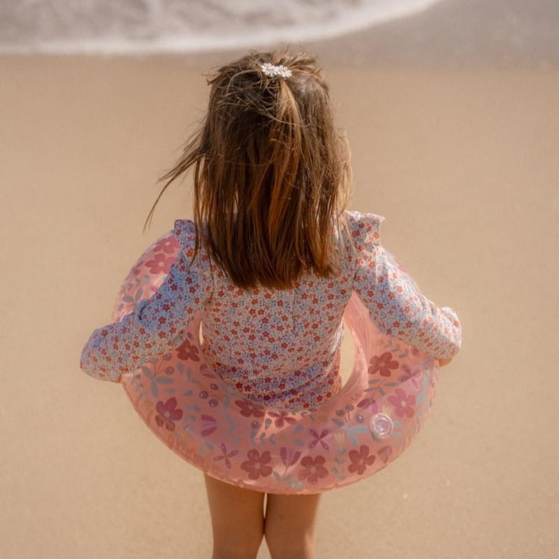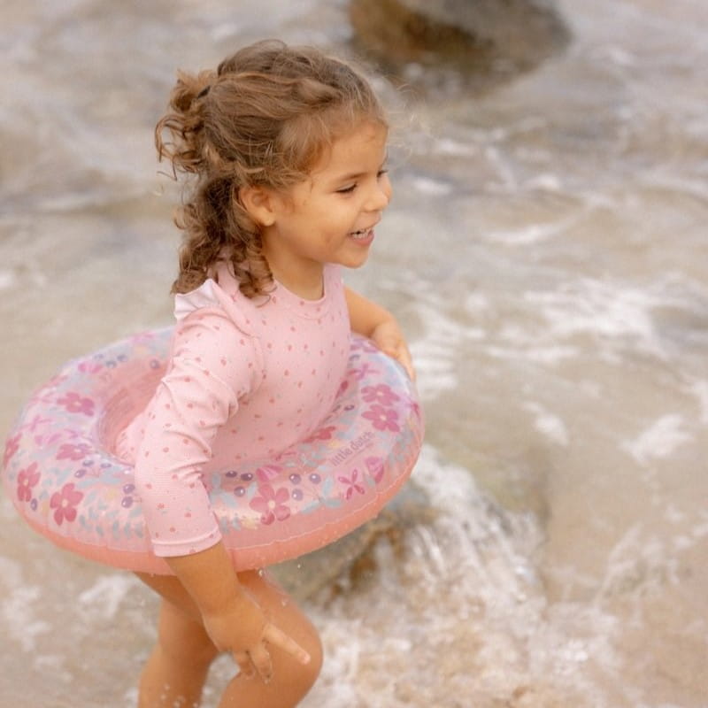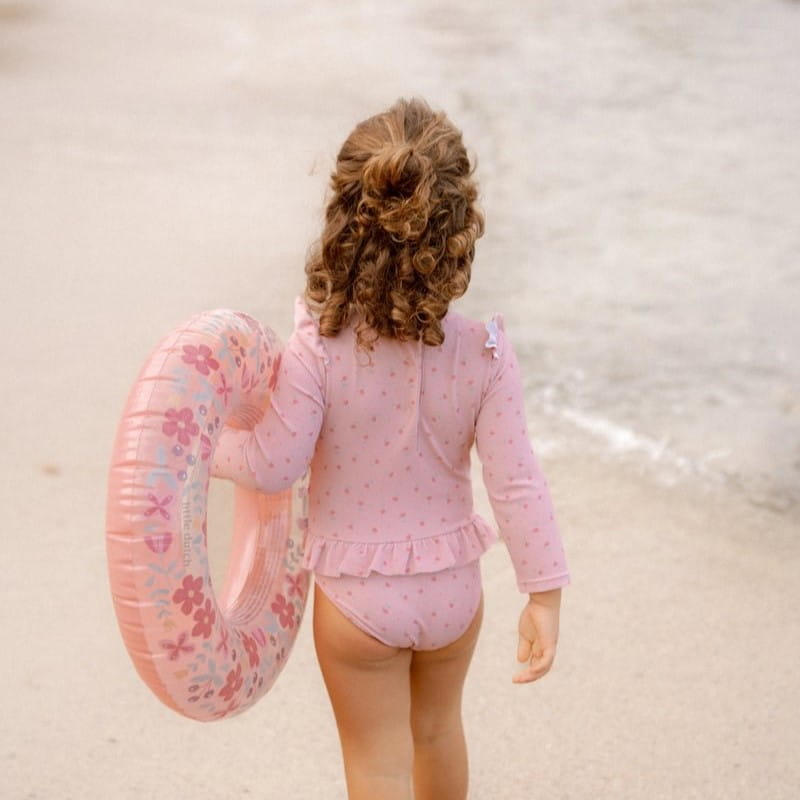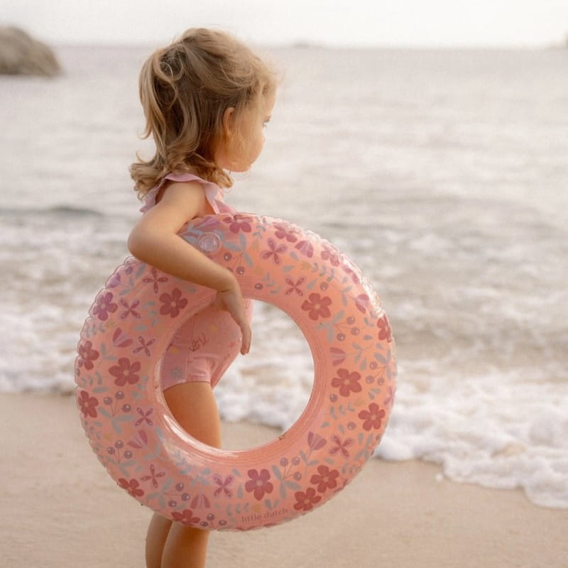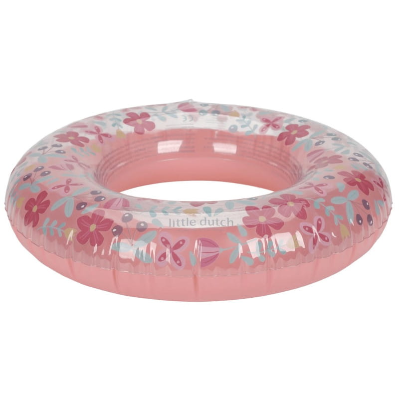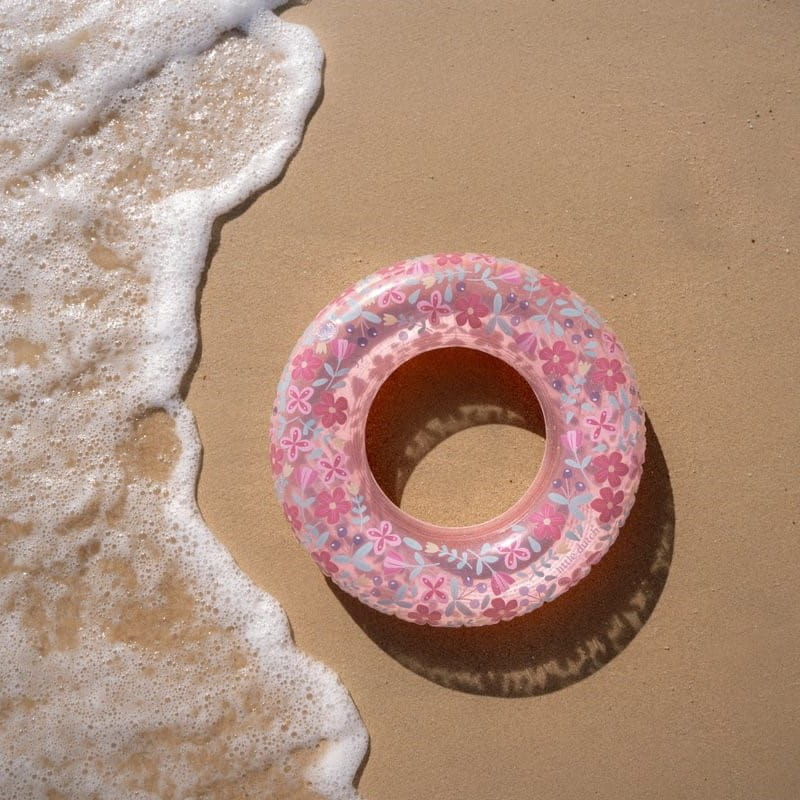 Koło do pływania od Little Dutch w kolorze różowym z kwiatkami.