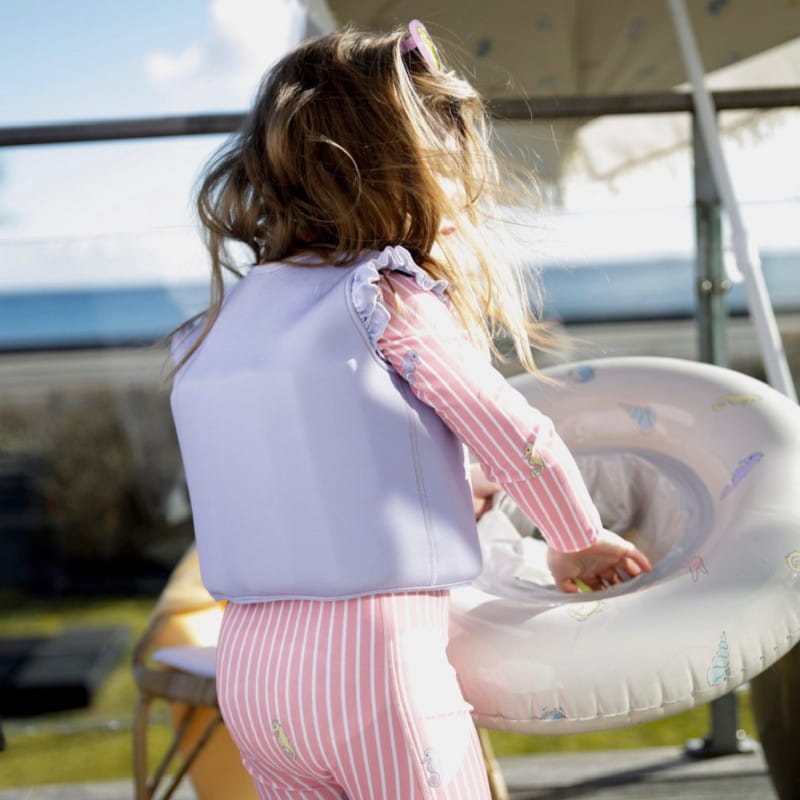 Neoprenowa kamizelka wypornościowa zwiększa komfort i bezpieczeństwo dziecka w basenach, w parkach wodnych, nam morzem.