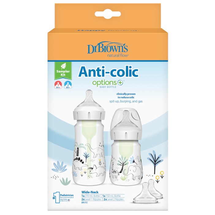 Najnowsze butelki antykolkowe Dr Brown's Options+ dają rodzicom możliwość wyboru, w jaki sposób chcą karmić swoje dziecko. Opatentowany system odpowietrzający pozwala na karmienie niemowląt butelką Dr Brown's Options+ z systemem lub bez systemu odpowietrzającego.