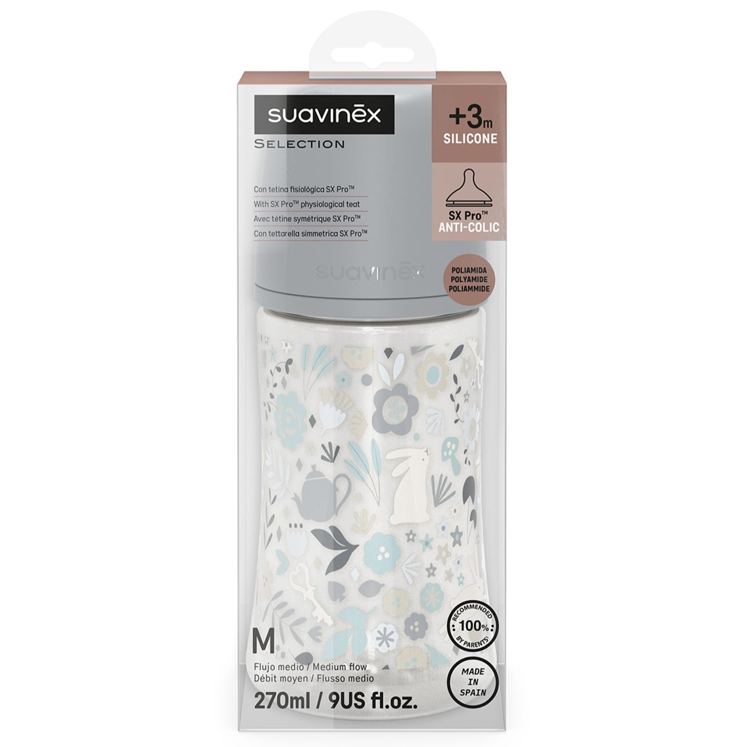 Butelka do karmienia niemowląt 270 ml ze smoczkiem SX Pro o średnim przepływie francuskiej marki Suavinex.