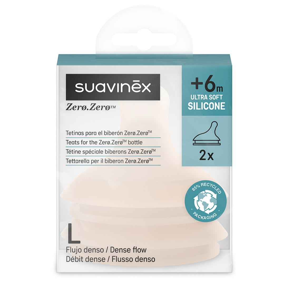 Zestaw 2 smoczków o szybkim przepływie LARGE do butelek Zero Zero z otworem zapewniającym średni przepływ. Idealny do podawania gęstych kaszy i pokarmów.