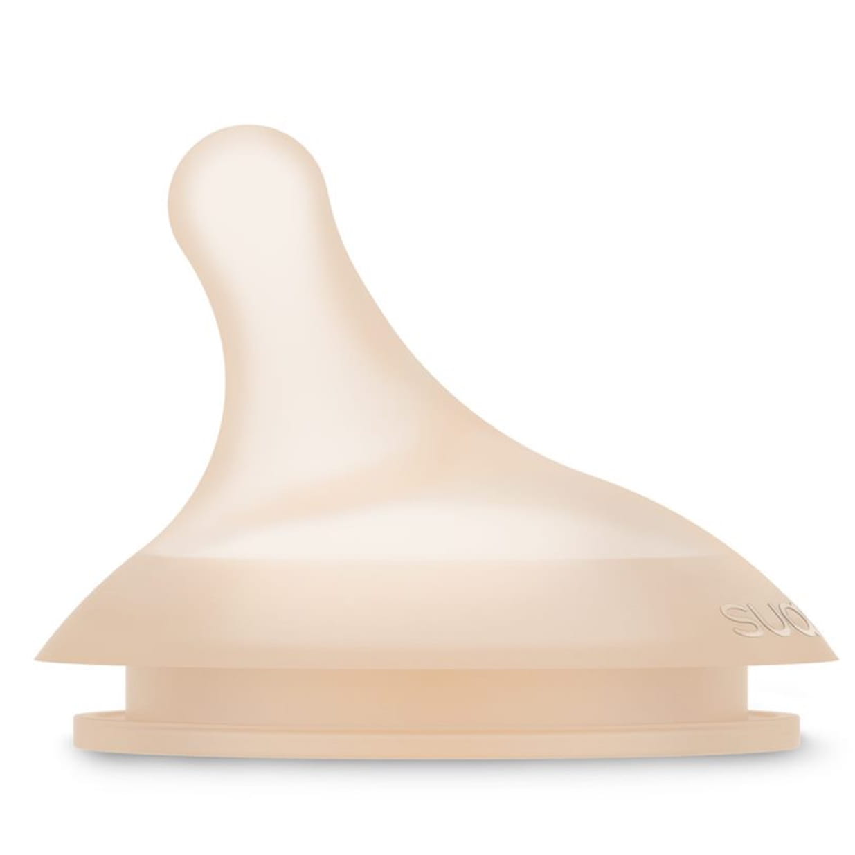Smoczek w dotyku zupełnie przypomina pierś matki. Zapewnia taką samą pozycję i pracę mięśni jamy ustnej, języka i szczęki dziecka, jak przy piersi matki. Zapobiega pojawianiu się pęcherzyków powietrza, ponieważ jest zawsze wypełniony. Umożliwia prawidłowe ustawienie szyi dziecka, a tym samym komfortowe karmienie. Pomaga zapobiegać przepływowi wstecznemu, a nawet infekcjom ucha.