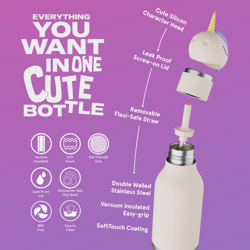 To trwała i stylowa butelka, która łączy funkcjonalność z dopracowanym wzornictwem marki Asobu. Po zdjęciu nakładki ze zwierzątkiem butelka staje się klasyczną butelką idealną dla starszych dzieci i dorosłych.