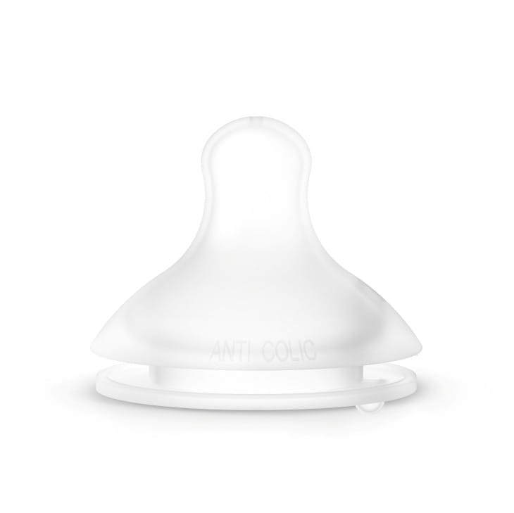 Smoczek o szybkim przepływie dla dzieci 3m+ pozwala na przepływ dowolnego rodzaju cieczy o średniej gęstości, idealny do mleka, soku czy bardzo rzadkiej kaszki.