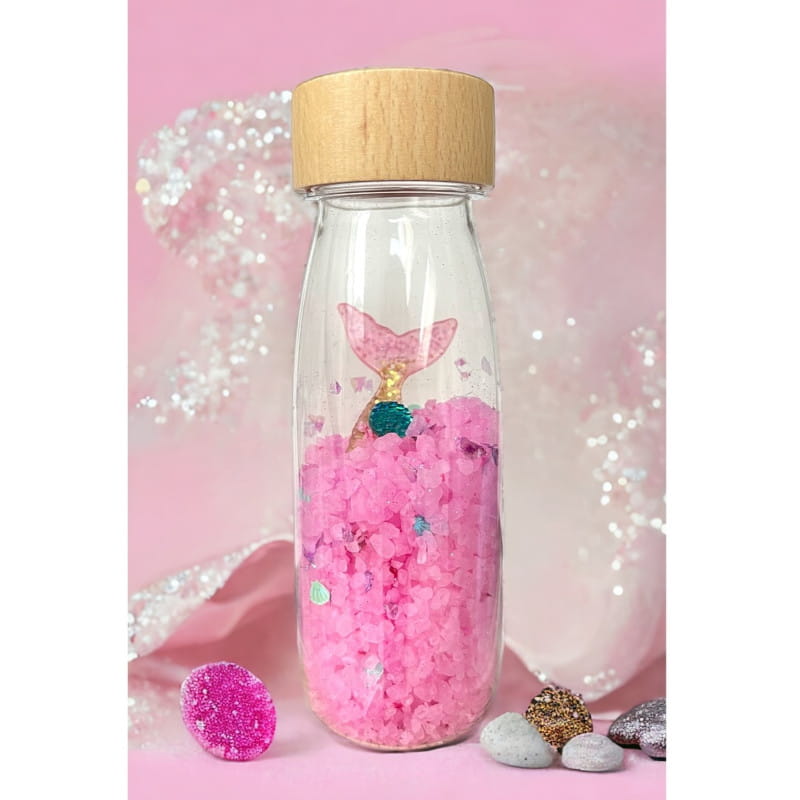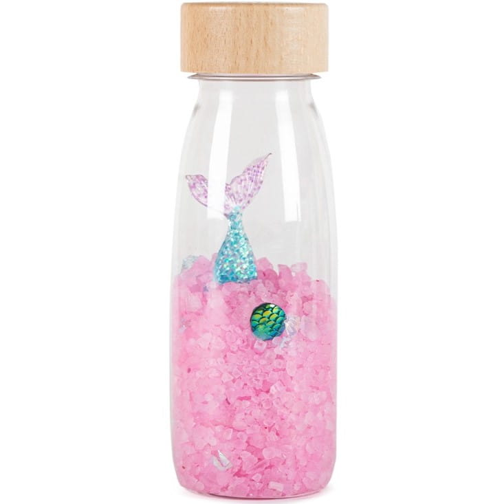Różnorodna zawartość butelek pozwala odkrywać nowe, ciekawe dźwięki charakterystyczne dla ukrytych w butelce elementów. Zabawa butelką od Petit Boum rozwija zmysły i wyobraźnię dziecka! Czy rozpoznasz butelki po ich dźwiękach? Czy znajdziesz w środku ogon syreny i jej klejnoty? :)
