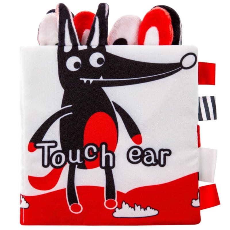 Książeczka jest wykonana z miękkiego, przyjemnego w dotyku materiału, w kontrastowych kolorach, szeleszcząca i grzechocąca.