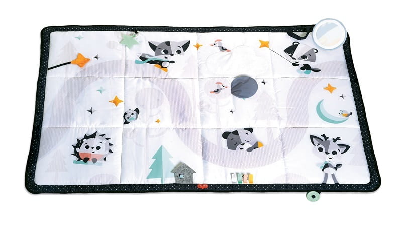 Mata łączy piękne wzornictwo i grafikę sympatycznych leśnych zwierzątek z funkcjonalnością i zawiera wiele interaktywnych elementów jak regulowane, wolnostojące lusterko czy gryzak w kształcie gwiazdki.