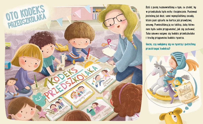 Feluś wraz ze swoją przytulanką misiem Gucio poznaje zasady dobre wychowania i kodeks przedszkolaka. Piękna grafika, duży format i sztywne, kartonowe strony to zdecydowanie dodatkowe zalety tej książki.