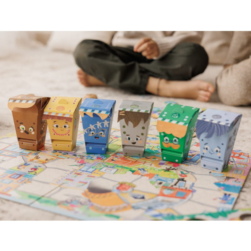 Po ułożeniu przez graczy planszy i rozmieszczeniu śmieci w przeróżnych zakątkach miasta*, Kubełki ruszają w trasę przez dzielnice.