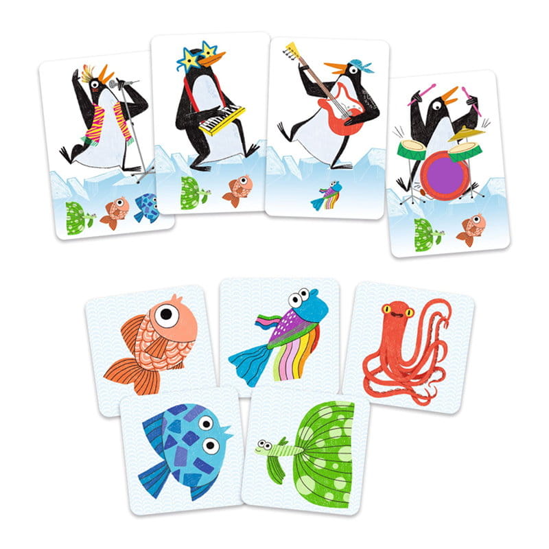 Przygotowanie do gry: Ułóż 4 kupki, każda dla innego typu muzyka: perkusisty, keyboardzisty, piosenkarza i basisty. Kupki powinny leżeć w jednej linii, odkryte, pośrodku stołu. Potasuj karty z rybami, ułóż je na kupce, zakryte. Odwróć 3 pierwsze karty i ułóż je w linii pod kartami muzyków, odkryte.