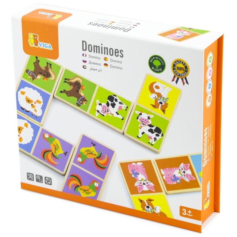 Drewniane domino z motywem zwierzątek z farmy marki Viga Toys.