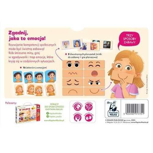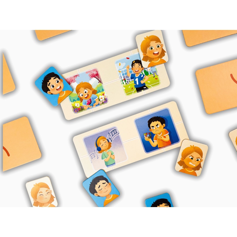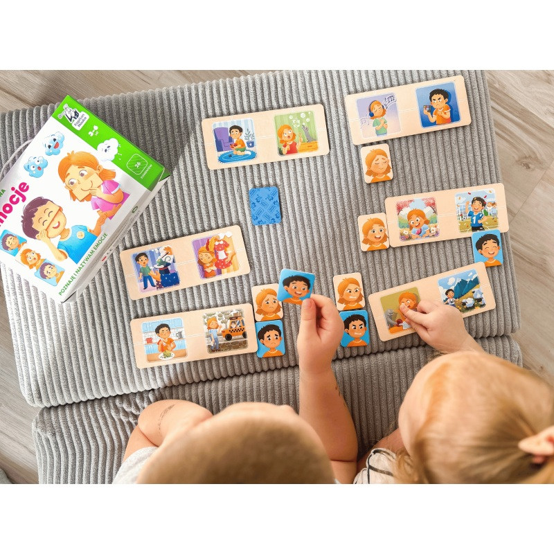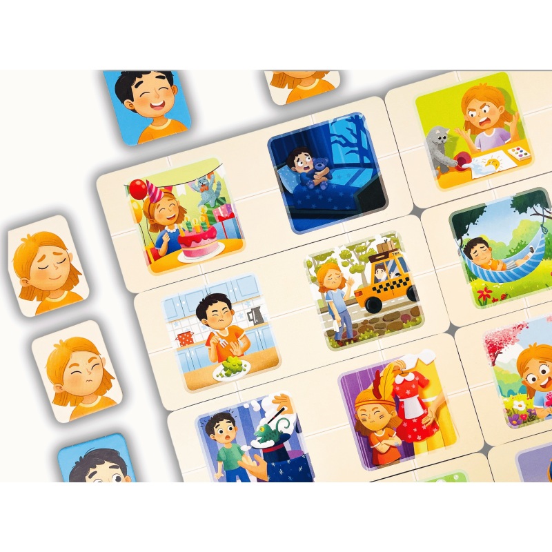 Dzięki kolorowym planszetkom i żetonom maluchy uczą się rozpoznawać emocje, zarówno własne, jak i innych osób oraz odkrywają, skąd się one biorą.