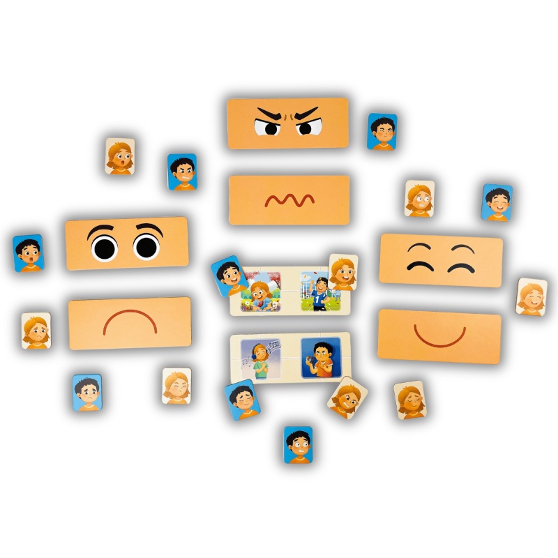 - Dopasowywanki – połącz połówki twarzy lub żetony z emocjami.