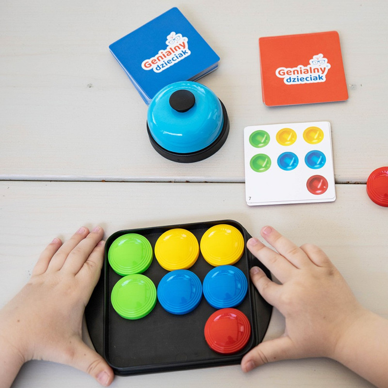 3. Gracz, który jako pierwszy prawidłowo ułoży swoje pionki, naciska dzwonek, informując o zakończeniu gry.