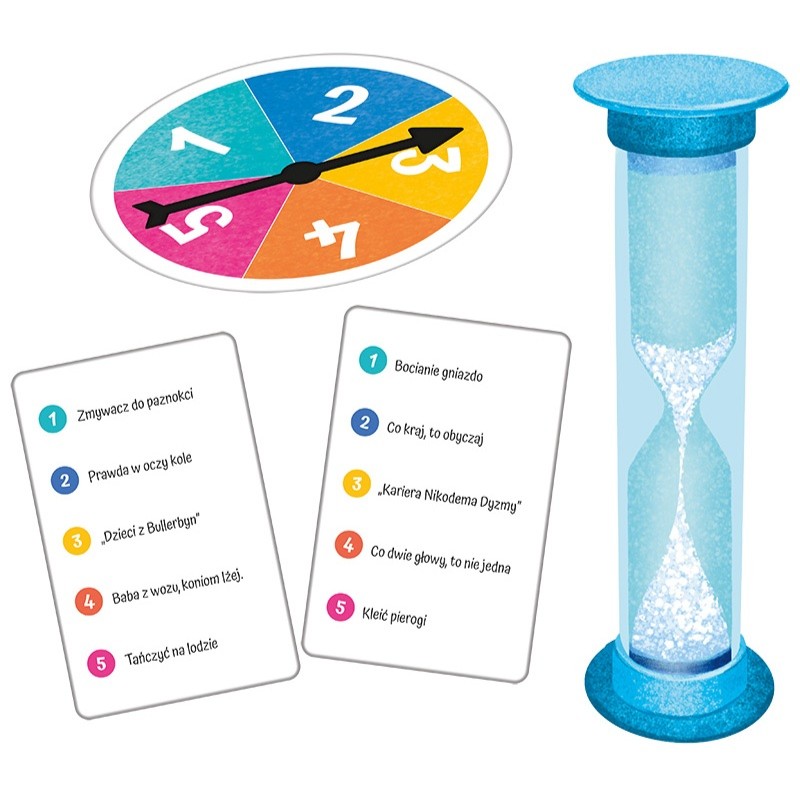 Przygotujcie się na ekscytującą zabawę, podczas której wasza pomysłowość będzie wystawiona na próbę. Klepsydra nieubłaganie będzie mierzyć czas, a koło losujące może przynieść nieoczekiwane wyzwania w postaci trudnych haseł.