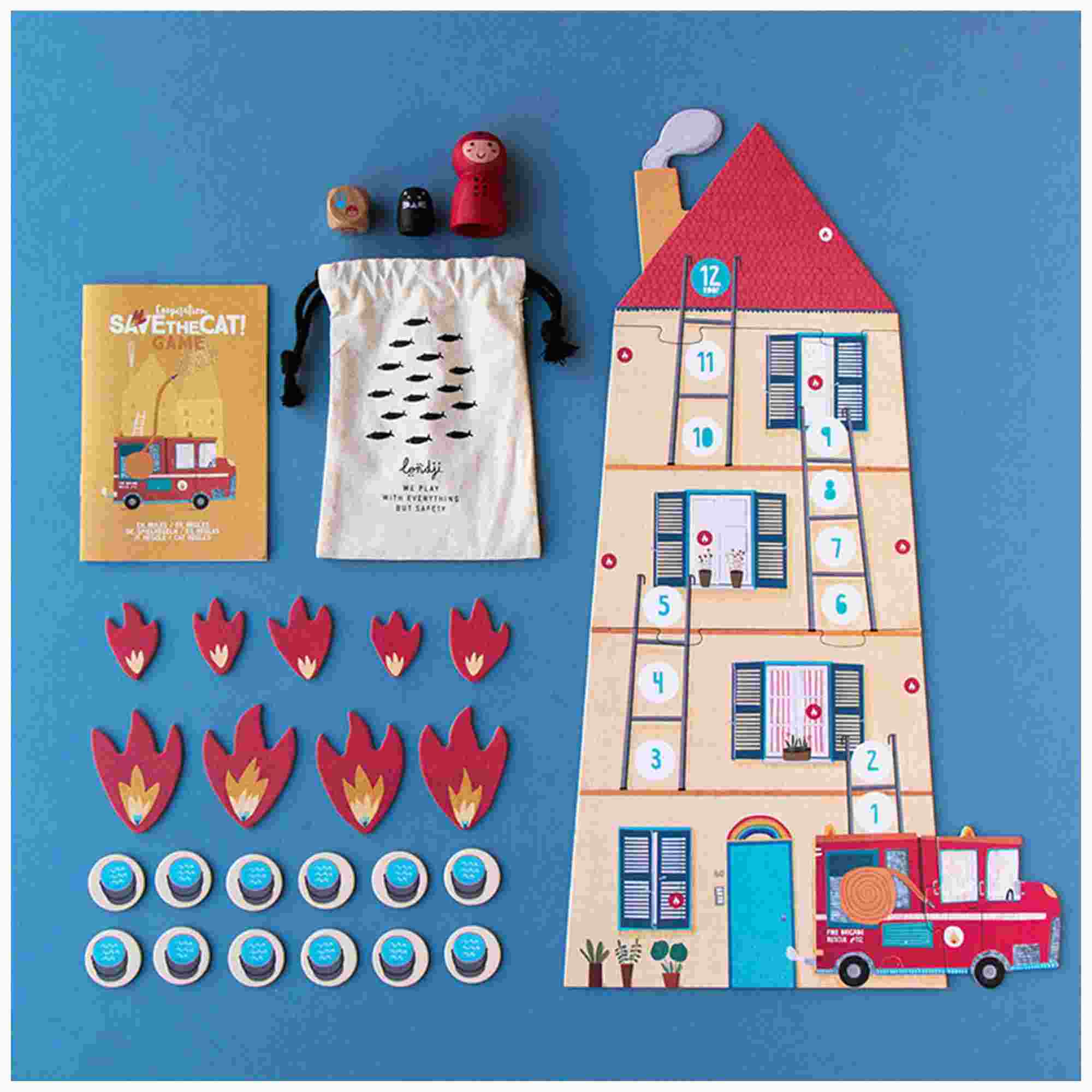KONIEC GRY: wygrywacie grę, jeśli strażakowi uda się wrócić do wozu strażackiego z kotkiem. Przegrywacie, jeśli na planszy będzie jednocześnie 9 aktywnych pożarów.