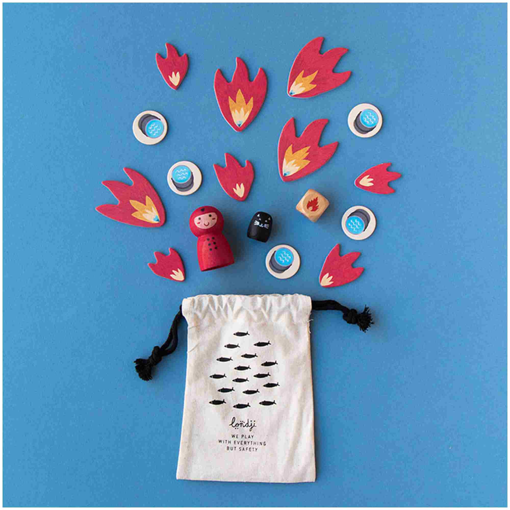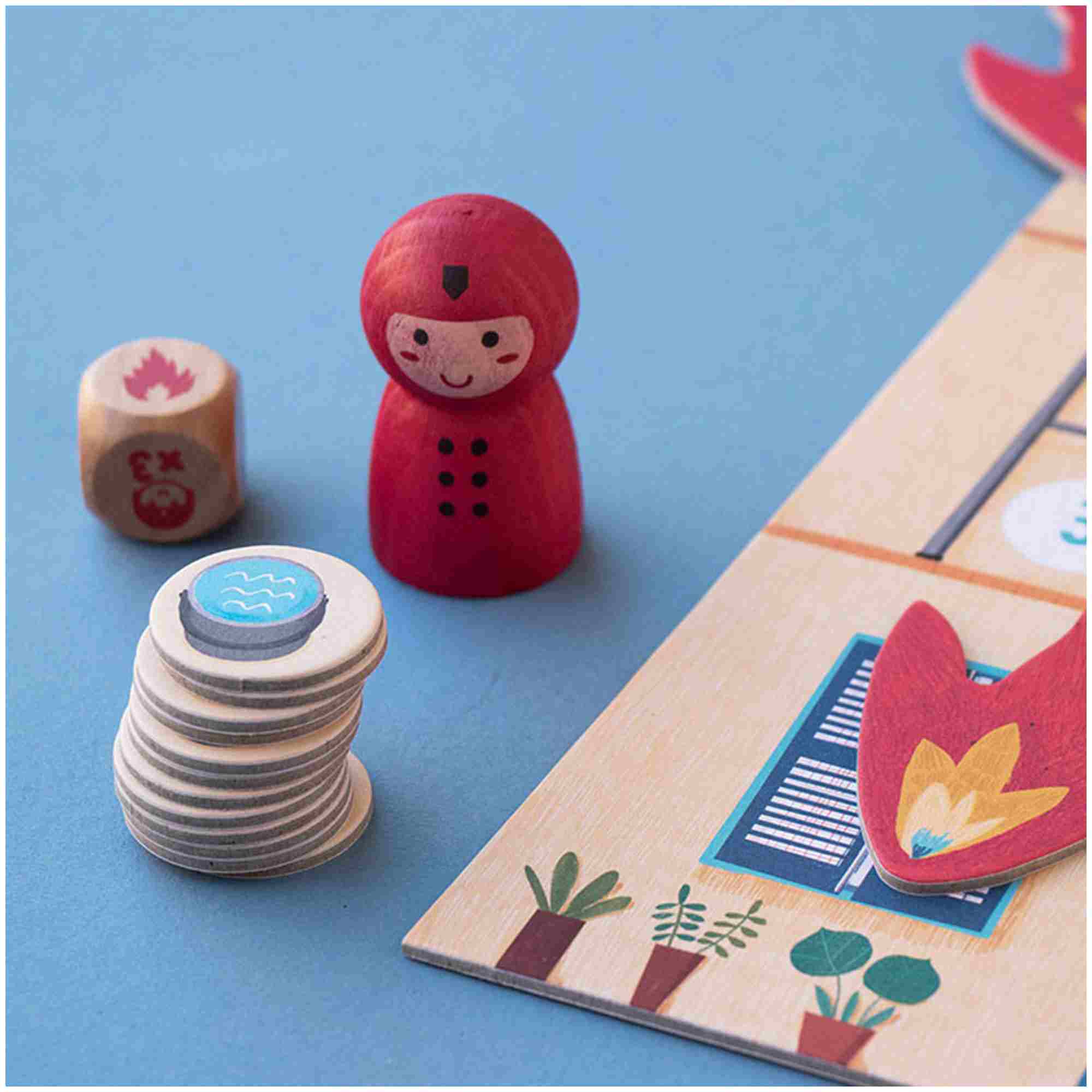 - Strażak i wiadro: gracz decyduje, jaką akcję chce wykonać - albo przesuwa strażaka o jedno pole do przodu lub bierz wiadro wody ze stosu aby użyć go do zgaszenia pożaru w swojej następnej turze.