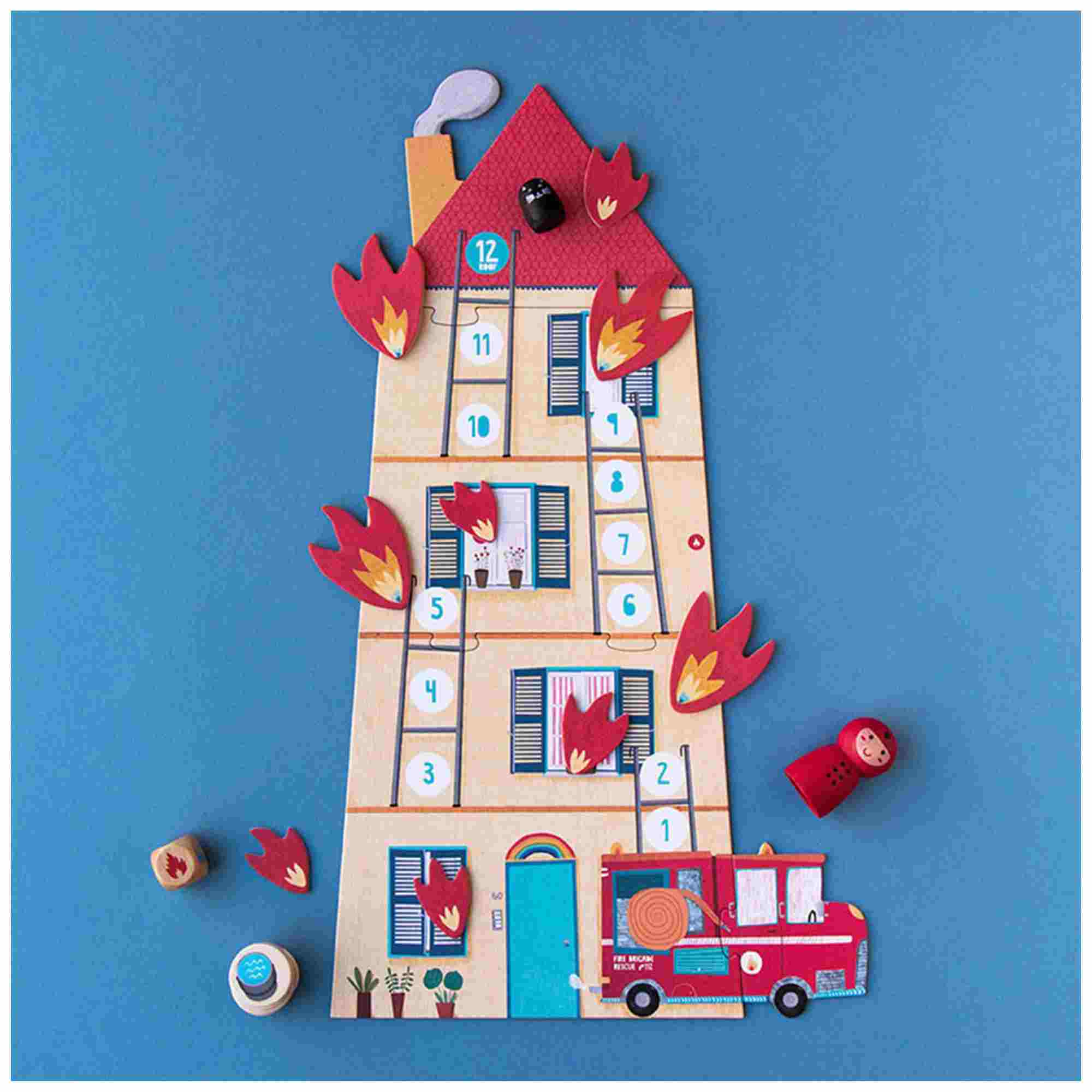 - Każdy gracz może ugasić tylko jeden pożar na rundę i musi to zrobić nim rzuci kostką; jeśli gracz zapomni użyć wody nim rzuci kostką, musi poczekać na następną rundę. Ogień można zgasić tylko na tym piętrze, na którym znajduje się strażak.