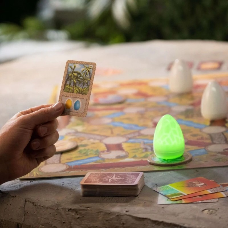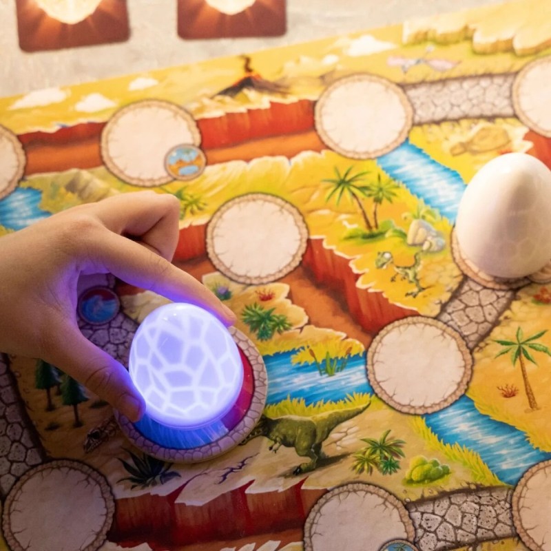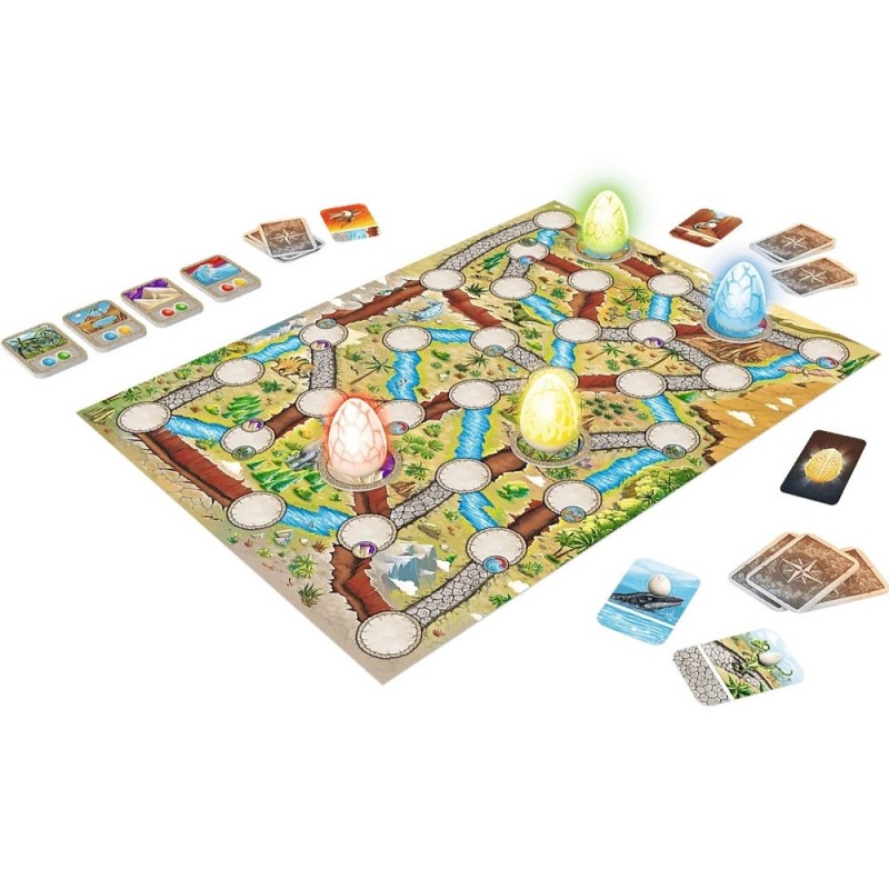 Gracze zagrywają karty i przesuwają jajka po prehistorycznym świecie dinozaurów. Kiedy dotrzecie do jednej z krain, jajka pokażą prawdziwe oblicza i zaświecą unikatowymi kolorami. Czy zdołacie zapamiętać ich położenie i doprowadzić do odpowiednich miejsc?