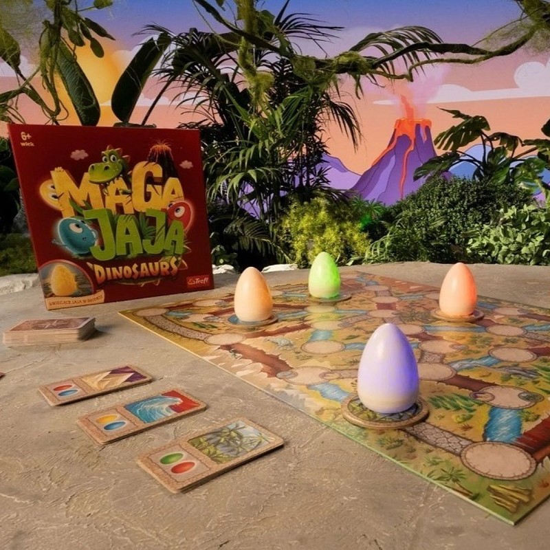 Magajaja Dinosaurs to gra rodzinna pełna magii, w której doprowadzacie świecące jajka do odpowiednich krain na planszy! Gra jest przeznaczona dla 2-4 graczy powyżej 6. roku życia. Przewidywany czas rozgrywki to 20-30 minut. Gra rozwija umiejętność logicznego myślenia, kreatywność i zdolność zdrowej rywalizacji.