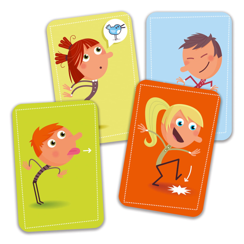 - Kolejni gracze po odkryciu swoich kart starają się powtórzyć dźwięki i miny wszystkich poprzednich uczestników by na końcu wykonać wylosowaną przez siebie „akcję”.
