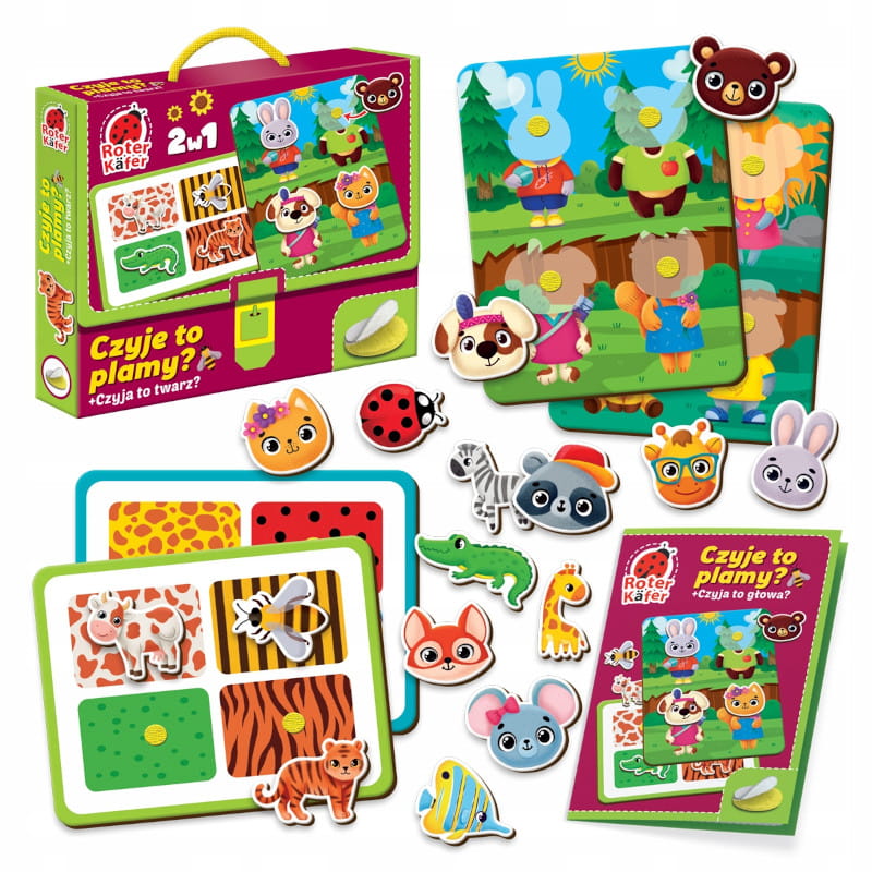 Zebra w czarno-białe paski i zielony krokodyl z plamkami. Przymocuj zwierzęta do plansz do gry z ich kolorem. Gotowe!