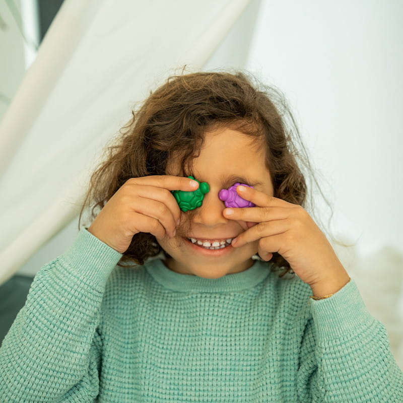 Przesuwaj zwierzęta po planszy, aby doprowadzić je do przekąsek w ulubionych kolorach. Kto dotrze tam szybciej? Żółwie czy