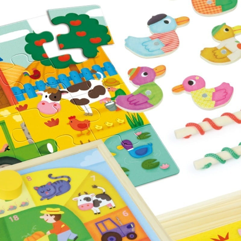 Zestaw gier dla najmłodszych z motywami gospodarstwa wiejskiego.