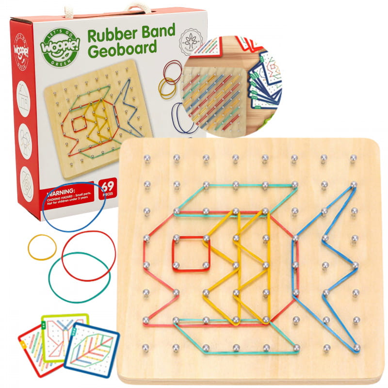 Drewniana układanka z gumkami marki Woopie.