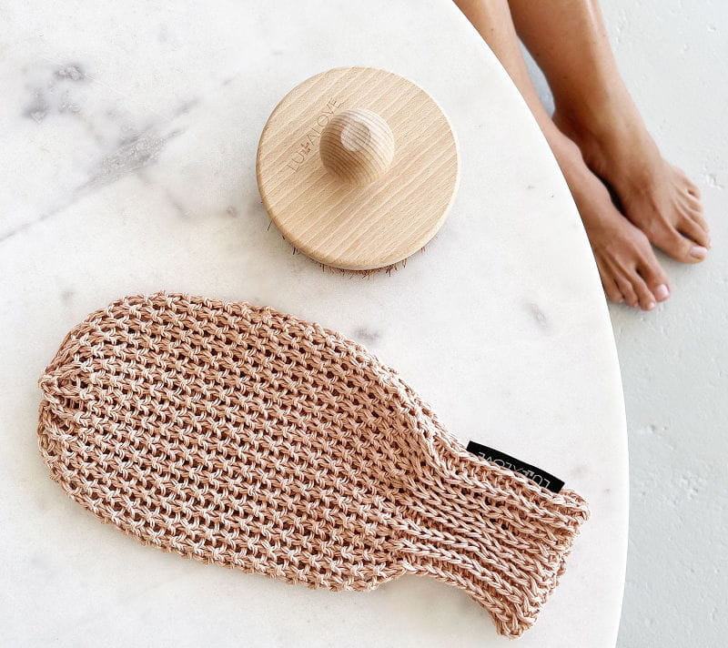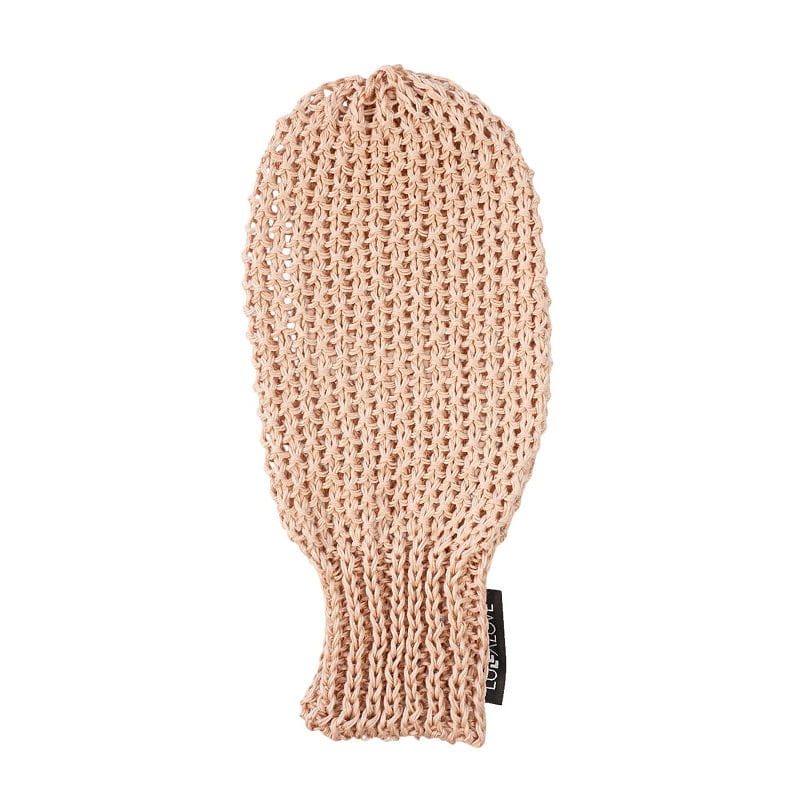 Rękawica wykonana jest z lnu, idealnie nadaje się do uzupełnienia szczotkowania ciała czy też zamiast niego w przypadku wrażliwej skóry lub np. problemów z pajączkami.