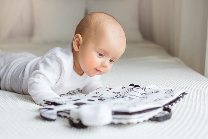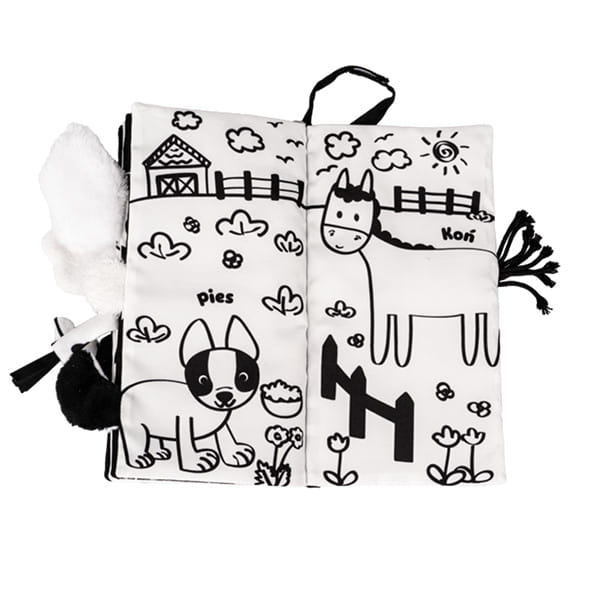 Książeczka kontrastowa zwierzaki sensory z ogonkami marki Jolly Baby to super zabawa w dotykanie sensorycznych elementów - czarno-białych ogonków zwierzątek o zróżnicowanej fakturze.