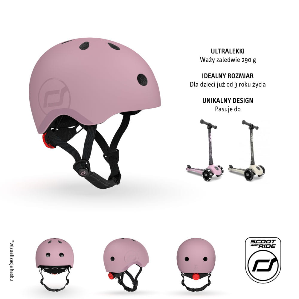 Ultralekki (waży zaledwie 290 g!), innowacyjny i stylowy dziecięcy kask ochronny austriackiej marki SCOOT&RIDE, który „rośnie” razem z maluchem. Idealny dla dzieci od 3. roku życia, na obwód głowy od 51 do 55 cm, regulowany za pomocą pokrętła z tyłu.