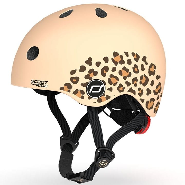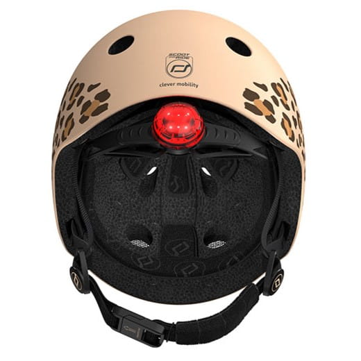 - kask jest spójny kolorystycznie z hulajnogą Highwaykick 1 Lifestyle i Highwaykick 2 Lifestyle Leopard – po bokach jasnobeżowej skorupy, znajduje się beżowo-brązowy wzór w lamparcie cętki