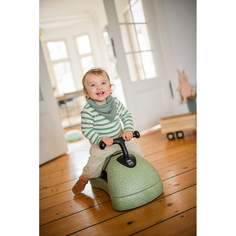 Po obróceniu podstawy na stronę z kółkami, My First w kilka sekund staje się niezwykle zwinnym jeździkiem, doskonałym dla dzieci powyżej 1. roku życia. W życiu dziecka to czas na trenowanie równowagi, naukę panowania nad własnym ciałem, doświadczenie pracy mięśni itp., a przede wszystkim – na pełną radości, niczym nie skrępowaną zabawę w ruchu! Wszystko to zapewnia jeździk My First – jego ciche, przednie koła obracają się o 360 stopni, co umożliwia płynny ruch i pełnię możliwości manewrowania pojazdem. My First jest przy tym bezpieczny nie tylko dla małych użytkowników, ale również dla podłóg, ścian i mebli, nie musimy się zatem obawiać, że szalejący maluch coś uszkodzi.