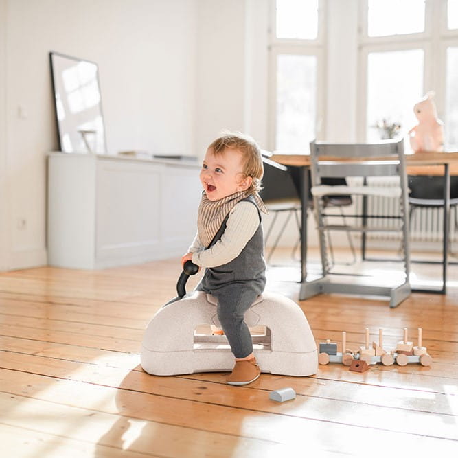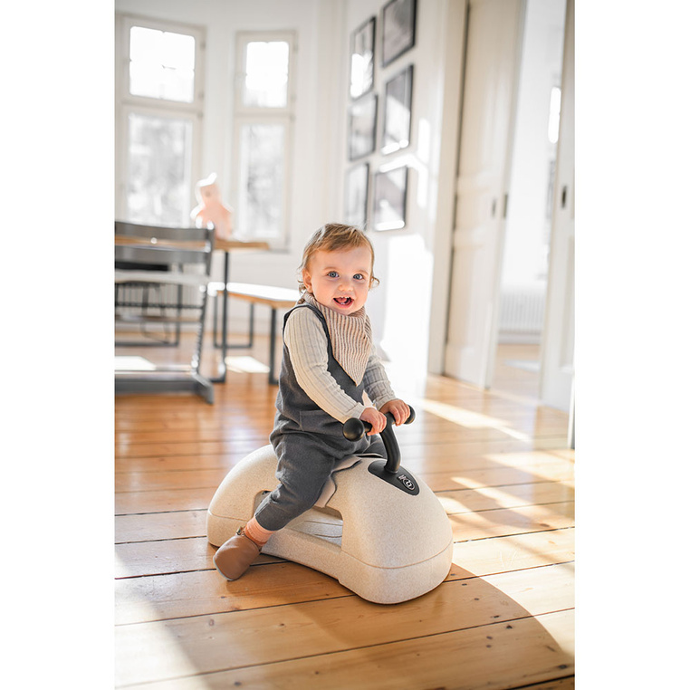 Po obróceniu podstawy na stronę z kółkami, My First w kilka sekund staje się niezwykle zwinnym jeździkiem, doskonałym dla dzieci powyżej 1. roku życia. W życiu dziecka to czas na trenowanie równowagi, naukę panowania nad własnym ciałem, doświadczenie pracy mięśni itp., a przede wszystkim – na pełną radości, niczym nie skrępowaną zabawę w ruchu! Wszystko to zapewnia jeździk My First – jego ciche, przednie koła obracają się o 360 stopni, co umożliwia płynny ruch i pełnię możliwości manewrowania pojazdem. My First jest przy tym bezpieczny nie tylko dla małych użytkowników, ale również dla podłóg, ścian i mebli, nie musimy się zatem obawiać, że szalejący maluch coś uszkodzi.