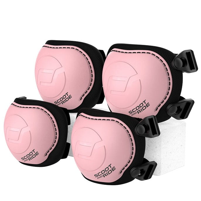 Zestaw ochraniaczy Scoot & Ride to niezastąpiony element wyposażenia, który skutecznie chroni dziecięce łokcie i kolana przed stłuczeniami podczas jazdy na jeździku, hulajnodze, rowerku biegowym, rowerze czy rolkach.