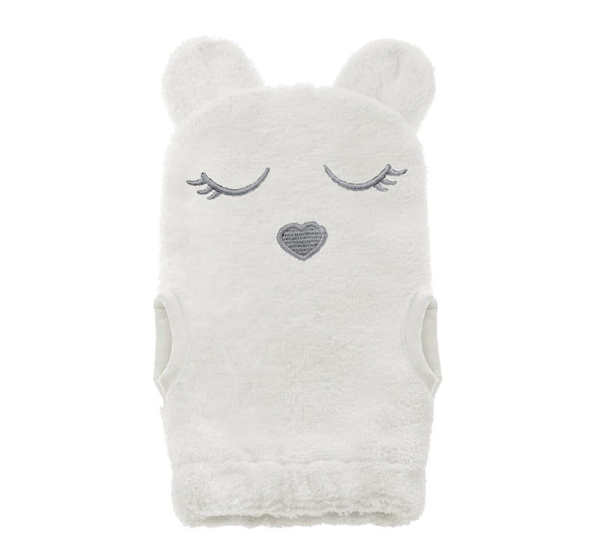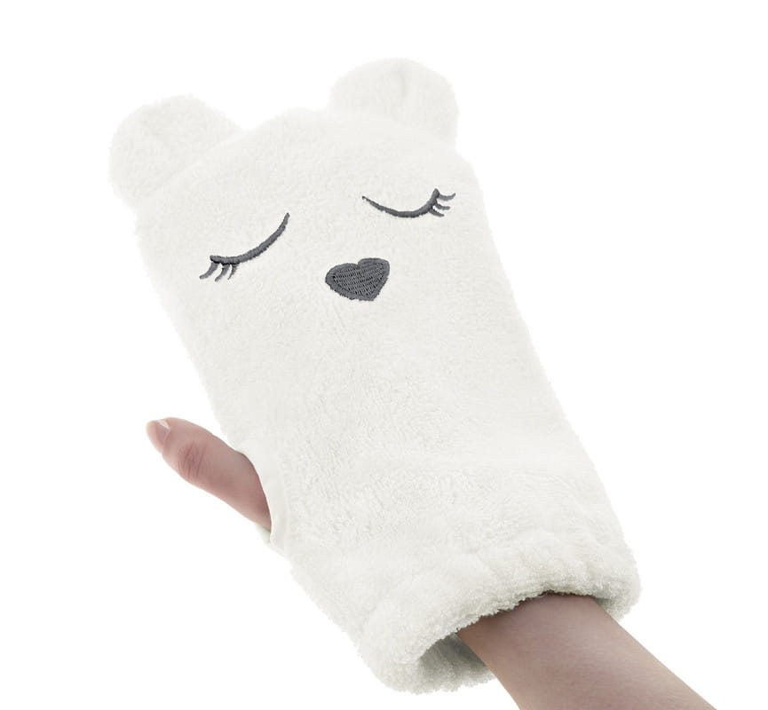 Wyhaftowany motyw misia sprawia iż myjka może być pretekstem do zabawy z maluszkiem podczas kąpieli i może umilić Tobie i maluszkowi wieczorny rytuał.