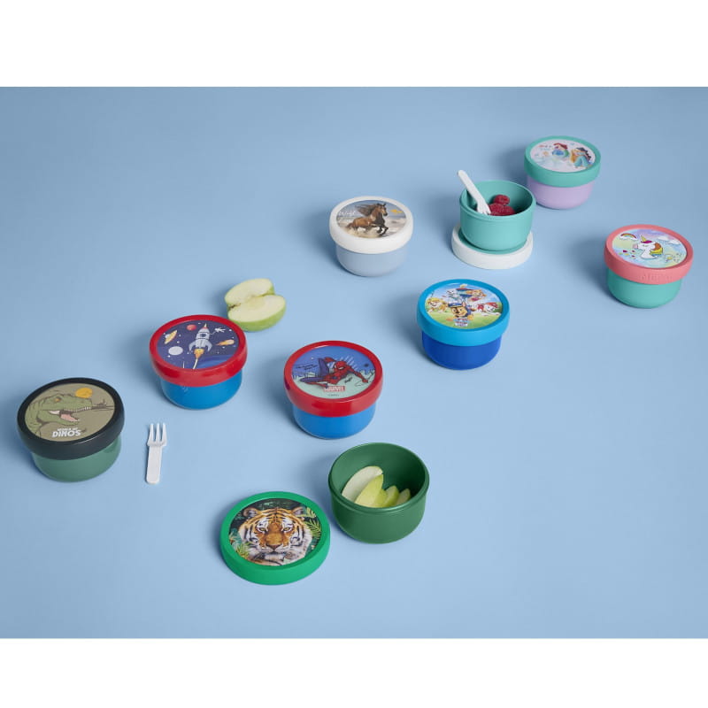 Piękny, a zarazem praktyczny pojemnik na przekąski dla dzieci. Dzięki kompaktowym wymiarom dziecko może zabrać pojemnik ze sobą do szkoły lub na wycieczkę.