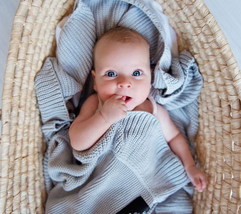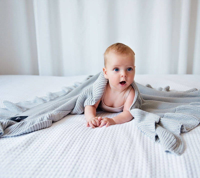 Rozmiar jest przybliżony w zależności od ułożenia, dzianina pracuje i rozmiar może odbiegać od standardu +/- 5%. Jeden z boków kocyka nie rozciąga się aż tak jak pozostałe. Wynika to z procesu produkcji i jest zabiegiem celowym.