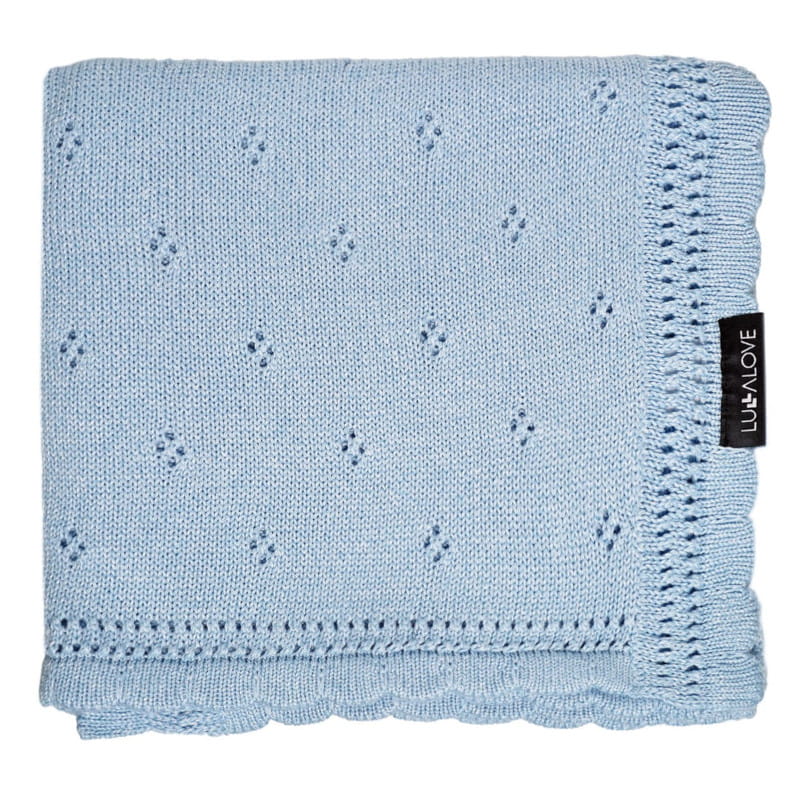 Kocyk o ażurowym splocie Daisy Błękit polskiej marki Lullalove.