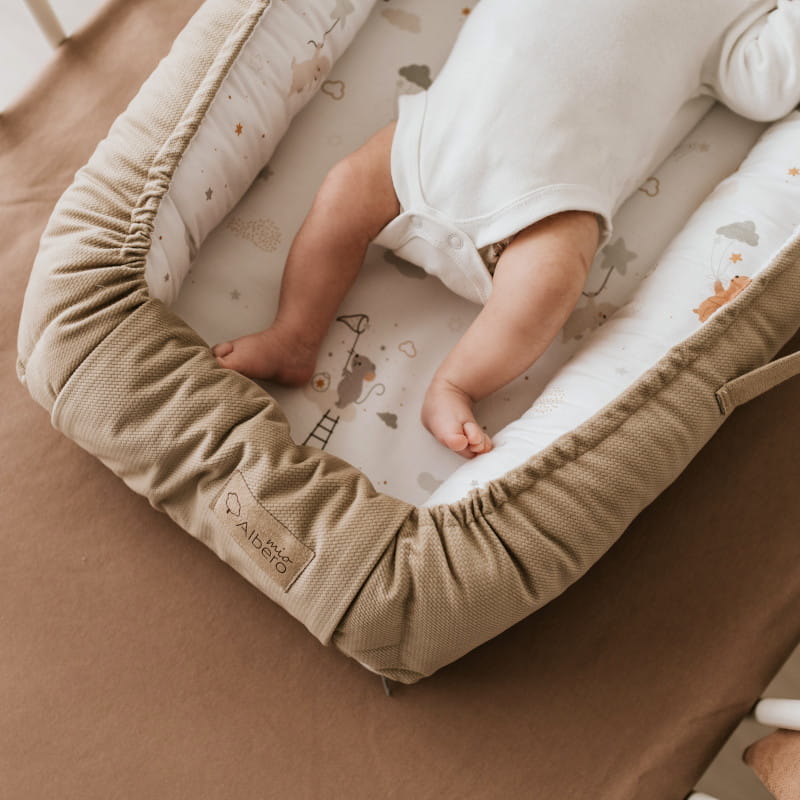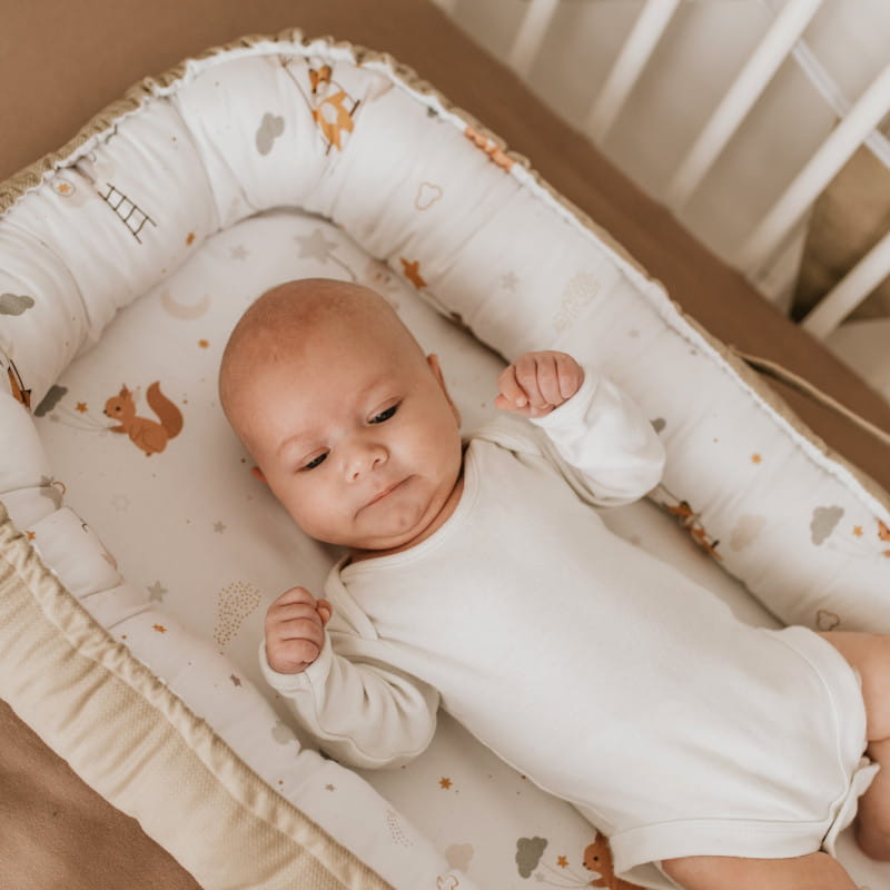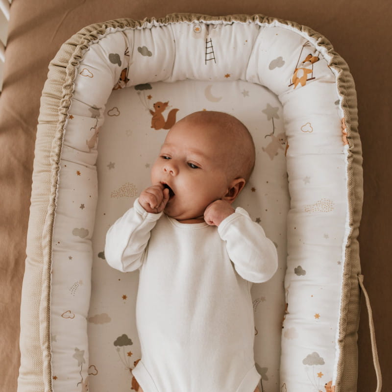 Gniazdo niemowlęce stworzone z myślą o noworodkach i zapewnieniu im przytulnego miejsca do spania i odpoczynku. Kokon otula maluszka i daje poczucie bezpieczeństwa podobne do tego w brzuchu matki.