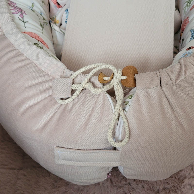 Boki wypełnione są antyalergiczną kulką silikonową, która nadaje miękkość, lekkość oraz puszystość. Dzięki temu miękkie brzegi kokonu delikatnie otulają maleństwo, dając mu poczucie bezpieczeństwa.