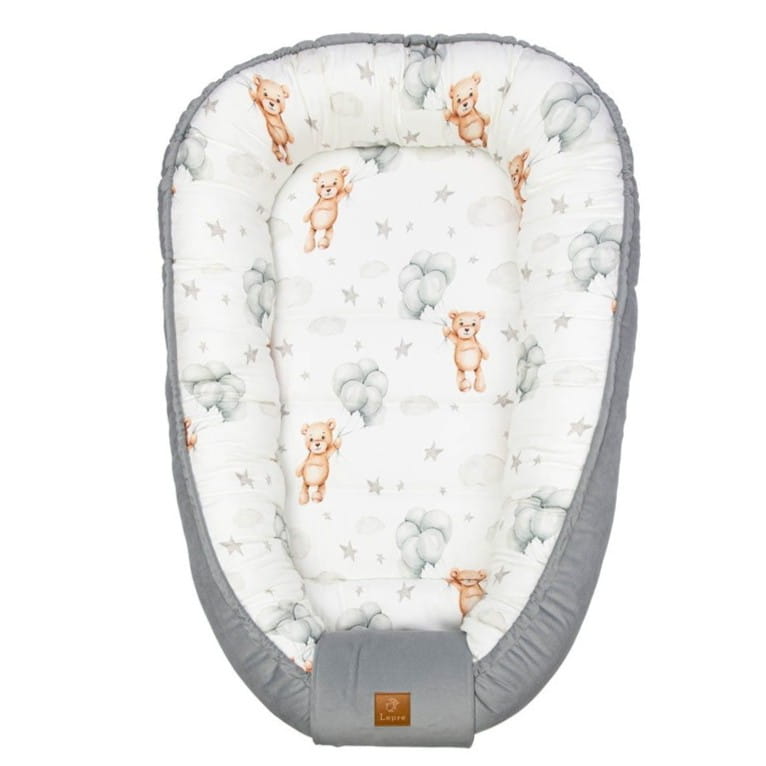 - Miękkie brzegi działają jak ochraniacz , dzięki temu po umieszczeniu w łóżeczku lub w pobliżu twardego wezgłowia, kokon chroni dziecko przed urazem delikatnej główki.