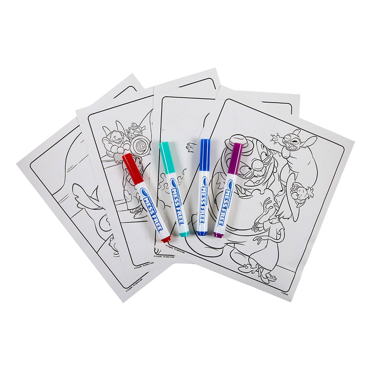 Zestaw zawiera 18 stron z przygodami Stitcha oraz 4 magiczne flamastry. Dzięki unikalnej technologii kolory pojawiają się wyłącznie na specjalnym papierze, więc meble, ubrania i ręce pozostają czyste. To dobry wybór zarówno do zabawy w domu, jak i podczas podróży.