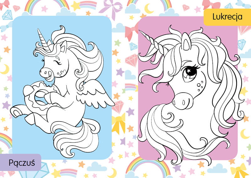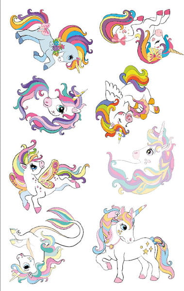 Książeczka zawiera obrazki do kolorowania i zestaw zmywalnych tatuaży.
